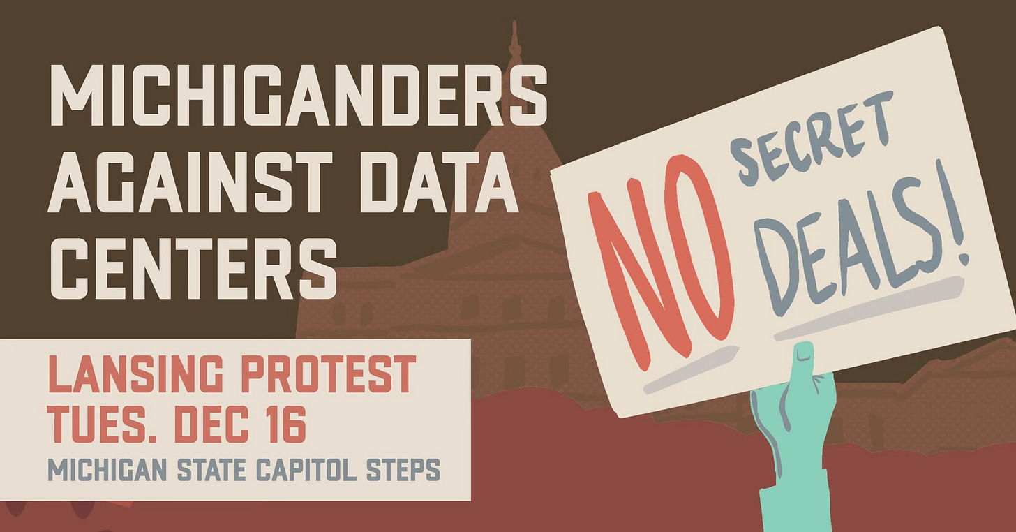 At the core of this fight is a straightforward ask: Michigan needs to slow down and do this right. That means ending special tax breaks for Big Tech data centers, pausing new projects until their environmental, economic, and public health impacts are fully studied, and ending backroom deals by requiring full public hearings at the MPSC. It also means standing with local governments and townships that choose to say no, instead of allowing them to be pressured, threatened with lawsuits or overridden.